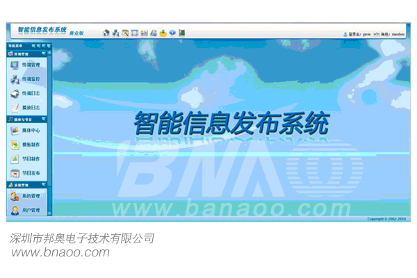 邦?yuàn)W多媒體信息發(fā)布系統(tǒng)采用B/S架構(gòu),實(shí)現(xiàn)不同的人員,從不同的地點(diǎn),